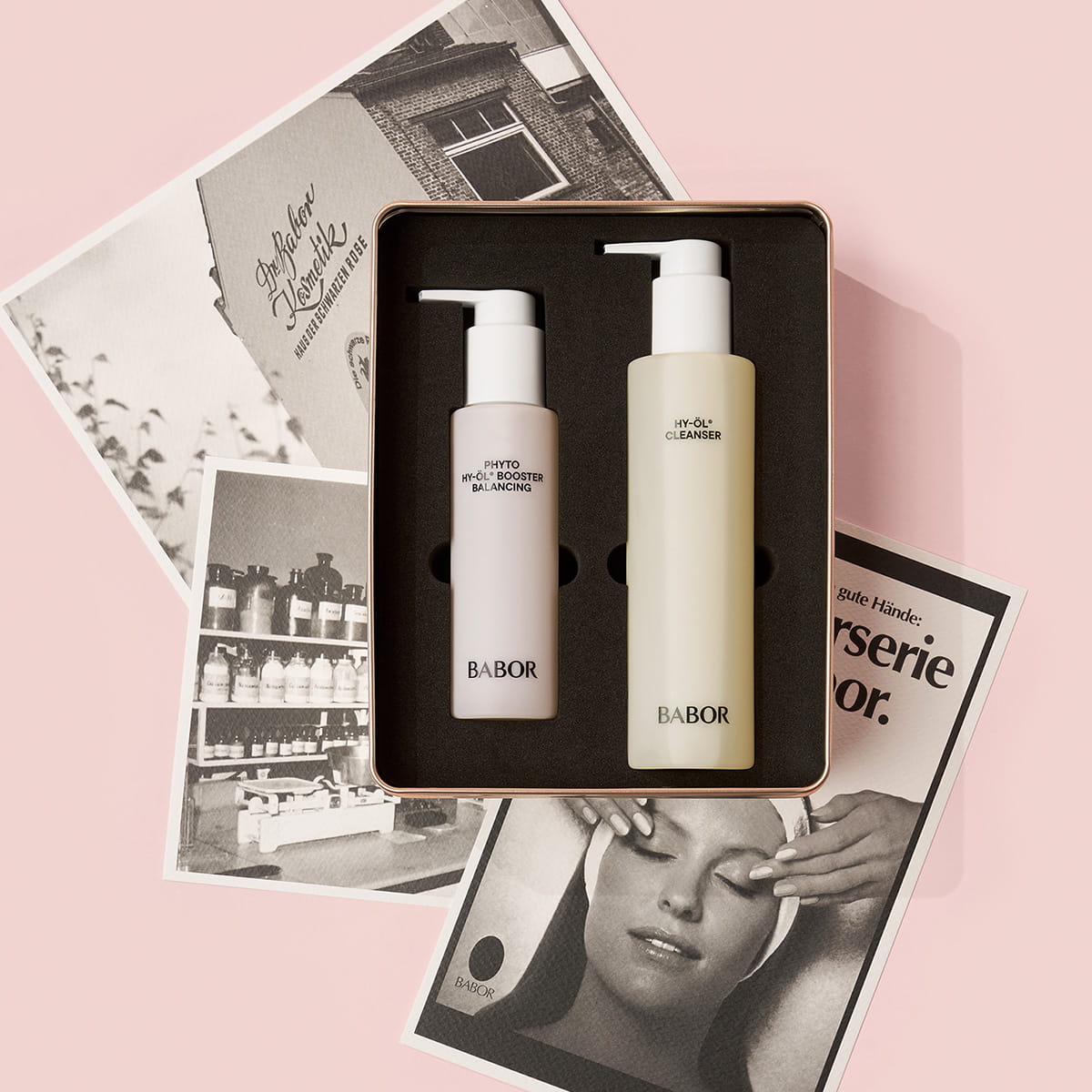 Das BABOR Dreamteam: Die revolutionäre, mehrfach prämierte und verwöhnende 2-Phasen Tiefenreinigung mit HY-ÖL CLEANSER und dem Phyto HY-ÖL® Booster Balancing. Die Ikone der Gesichtsreinigung begeistert durch seine effektive und hautschonende Reinigung.