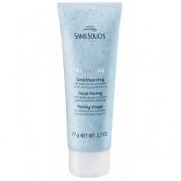 Ein Peeling kann als eine regelmäßig nötige Grundreinigung gesehen werden, um ein optimales Hautbild zu erhalten. Das Cleansing Gesichtspeeling von Sans Soucis nutzt Thermalwasser und Granulate aus Bambus und Jojoba, um abgestorbene Hautzellen und tiefsitzende Verschmutzungen zu entfernen. Wiesenschaumkrautöl wirkt pflegend und spendet Feuchtigkeit, so dass die Haut danach auf weitere pflegende Schritte optimal vorbereitet ist.