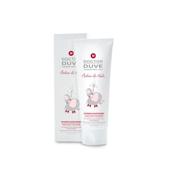 Pflege und Schutz und noch viel mehr bietet die Dr. Duve Kids Wind & Wettercreme: Inhaltsstoffe wie Lacandona-Honig, Cupuaçu-Butter, Baumwollextrakt, Mandelöl, Jojobaöl sowie Calendula machen widerstandsfähig gegen Kälte, Wind und Wetter. Gleichzeitig beruhigt diese wirkstoffstarke Kombination aus natürlichen Substanzen auch die Haut und sorgt für einen Feuchtigkeitshaushalt, der sich auch bei Wind und Wetter in idealer Balance befindet. Dieses Pflegeprodukt ist ein zarter Allrounder für die Wintermonate, der Ihr Kind mit dem Besten und Bewährtesten versorgt, was natürliche Kinderpflege zu bieten hat. Erhalten Sie die Geschmeidigkeit sensibler Kinderhaut auch unter harten Bedingungen. Dank Dr. Duve kann Ihrem Schützling sogar ein kalter Wind direkt ins Gesicht blasen, ohne einen Schaden anzurichten …
