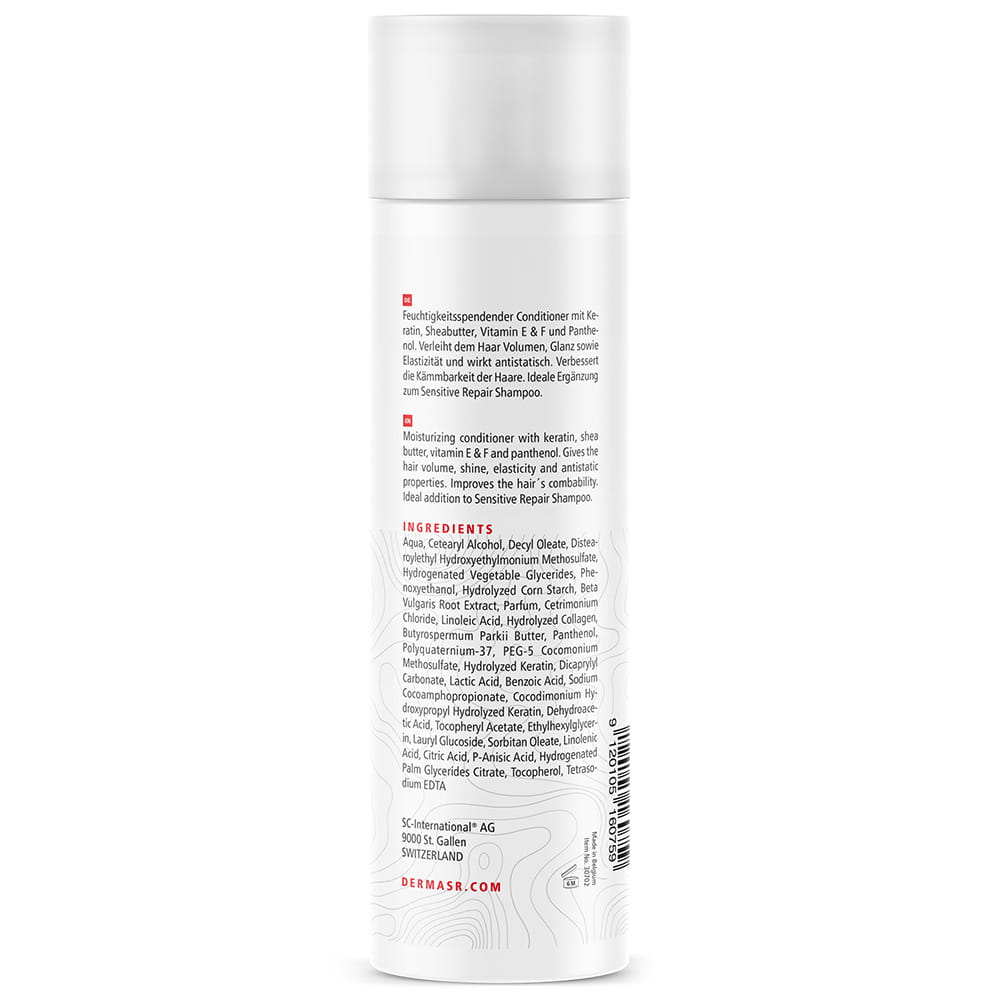 Der feuchtigkeitsspendende Keratin Repair Conditioner verleiht dem Haar Volumen, Glanz sowie Elastizität. Er enthält wertvolle Inhaltsstoffe wie Keratin, Sheabutter, Vitamin E & F sowie Panthenol, verbessert die Kämmbarkeit der Haare und schützt vor UV-Schäden. Der Conditioner ist die ideale Ergänzung zum Sensitive Repair Shampoo.